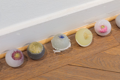 Die Performerin interagiert mit den Objekten auf eine diskrete, fast unmerkliche Weise. Es entstehen Bilder, die einem Tableau vivant nahekommen und die Besucher:innen zum Verweilen und Betrachten einladen. Die Grenzen zwischen den Körpern der Performerin und der Objekte verschwimmen zusehends. Sie werden zu Erweiterungen ihres jeweiligen Gegenübers. Das wirft die Frage auf, ob die Performerin auf die Objekte reagieren oder – umgekehrt – die Objekte auf die Performerin.