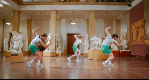 In her works, Nicola Kötterl critically examines the representation, construction and instrumentalization of body images and investigates the ideological meanings of idealized body representations. Her performances often take place in historical buildings with a National Socialist past. The architecture of German fascism is monumental, loud and straightforward. It was intended to embody power, superiority and strength and to impress and intimidate the population. With the same intention, National Socialist propaganda art made use of the aesthetics of ancient Greek statues.
