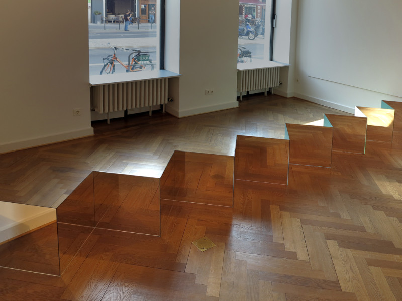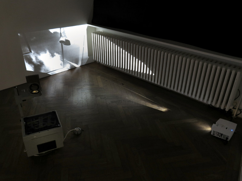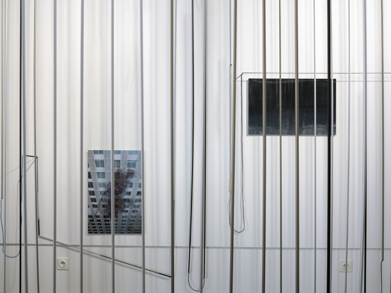 Artistic interventions redefine the gallery’s fixed space to draw viewers into a dream-like sphere. Normally straight edges become skewed, solid structures become unfamiliar, new depths are created that dislocate the space from its temporal mooring and transport it into a world of fantasy. Your imagination is led through a winding unknown similar to the labyrinths of a dream that is unravelling networks of thoughts in anticipation of the coming day. When you step outside the space again, it’s like waking up from a dream to see a simulated morning in your mind’s eye.
